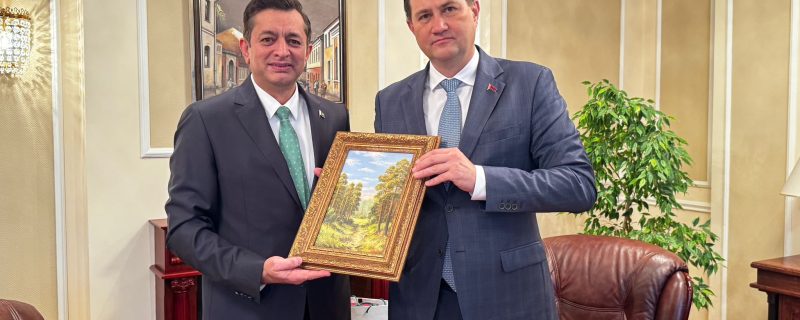 منسک (وائس آف رشیا) بیلاروس میں پاکستان کے سفیر سجاد حیدر خان بیلاروس میں اپنے سفارتی مشن کی تکمیل پر جمہوریہ بیلاروس کے وزیر خارجہ مسٹر میکسم رائزنکوف سے الوداعی ملاقات کی۔ ملاقات میں دونوں فریقوں نے بیلاروس اور پاکستان کے تعلقات اعلیٰ سطح پرپہنچنے پراطمینان کا اظہار کیا اور سیاسی، تجارتی اور اقتصادی شعبوں میں کامیاب تعاون کو اجاگر کیا۔