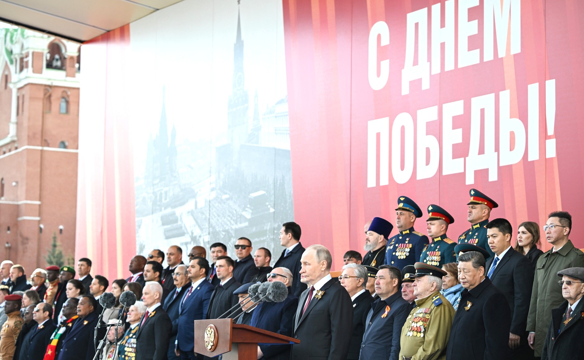 اس موقع پر صدر پوتن نے خطاب کرتے ہوئے کہا کہ سوویت یونین نے کروڑوں جانوں کی قربانی دے کر پوری انسانیت کے لیے امن اور آزادی کا دفاع کیا۔ انہوں نے کہا، “ہم فتح کے لمحے کو ہمیشہ یاد رکھیں گے، اپنے آبا و اجداد کے ورثے کو زندہ رکھیں گے، اتحاد کے ساتھ کھڑے ہوں گے اور مقدس فتح کی عظمت کو ہمیشہ بلند رکھیں گے۔
