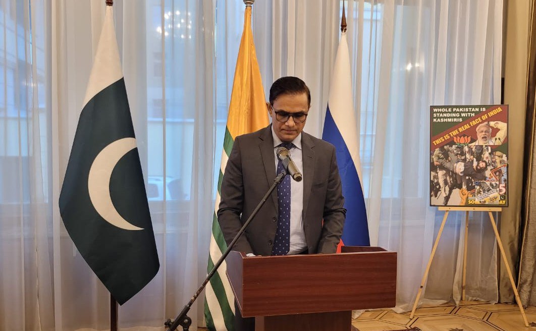ماسکو(شاہد گھمن سے) دنیا بھر کی طرح روس کے دارالحکومت ماسکو میں پاکستانی سفارتخانے میں ایک پروقار تقریب کا انعقاد کیا گیا، جس میں بھارت کے مظالم کی پرزور مذمت کی گئی اور کشمیری عوام سے بھرپور یکجہتی کا اظہار کیا گیا۔