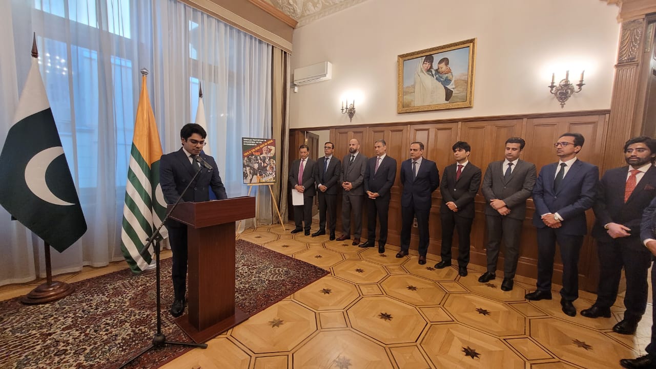 سفیر پاکستان محمد خالد جمالی نے صدر پاکستان محمد آصف زرداری کا پیغام پڑھ کر سنایا. انہوں نے کہا کہ 5 اگست 2019 کا دن تاریخ کا ایک سیاہ باب ہے، جب بھارت نے یکطرفہ طور پر اور بین الاقوامی قوانین کی خلاف ورزی کرتے ہوئے، مقبوضہ جموں و کشمیر کی خصوصی آئینی حیثیت کو ختم کیا۔ یہ اقدام نہ صرف اقوام متحدہ کی قراردادوں کی خلاف ورزی تھا، بلکہ کشمیری عوام کے بنیادی انسانی حقوق پر بھی ایک سنگین حملہ تھا۔