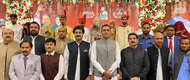 اجتماعی شادی کی تقریب میں ممبران قومی و صوبائی اسمبلی امیدوار بلال فاروق تارڑ، وقار چیمہ، عدنان چٹھہ، قیصر اقبال سندھو، عمران خالد بٹ، عمر فاروق ڈار، محمد نواز چوہان، عمانوئل اطہر نے شرکت کی۔