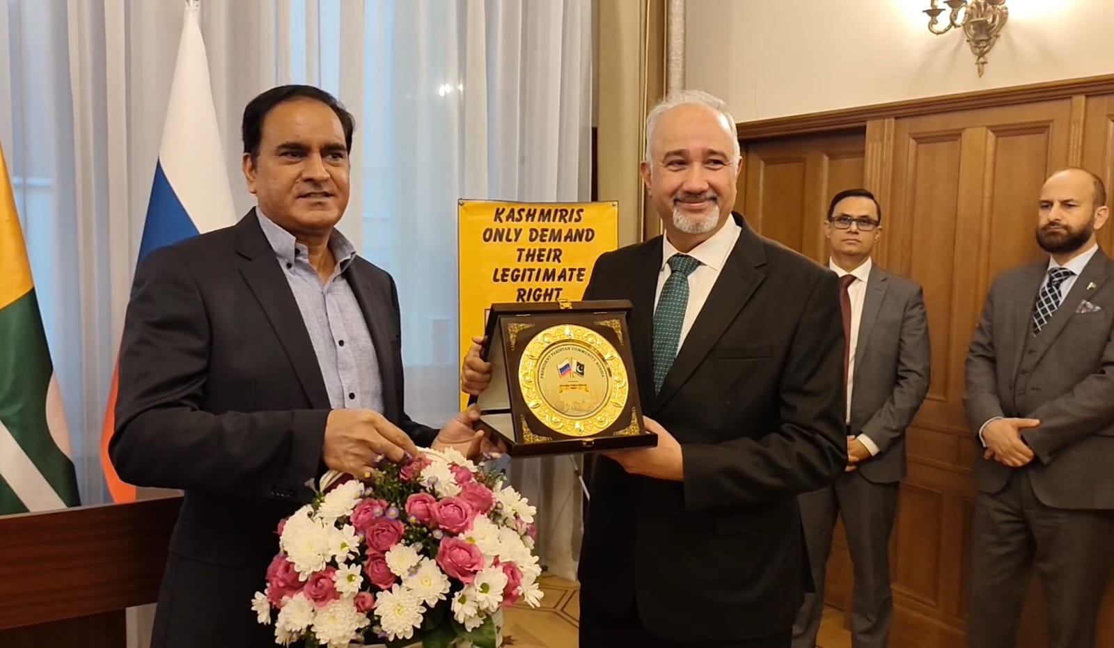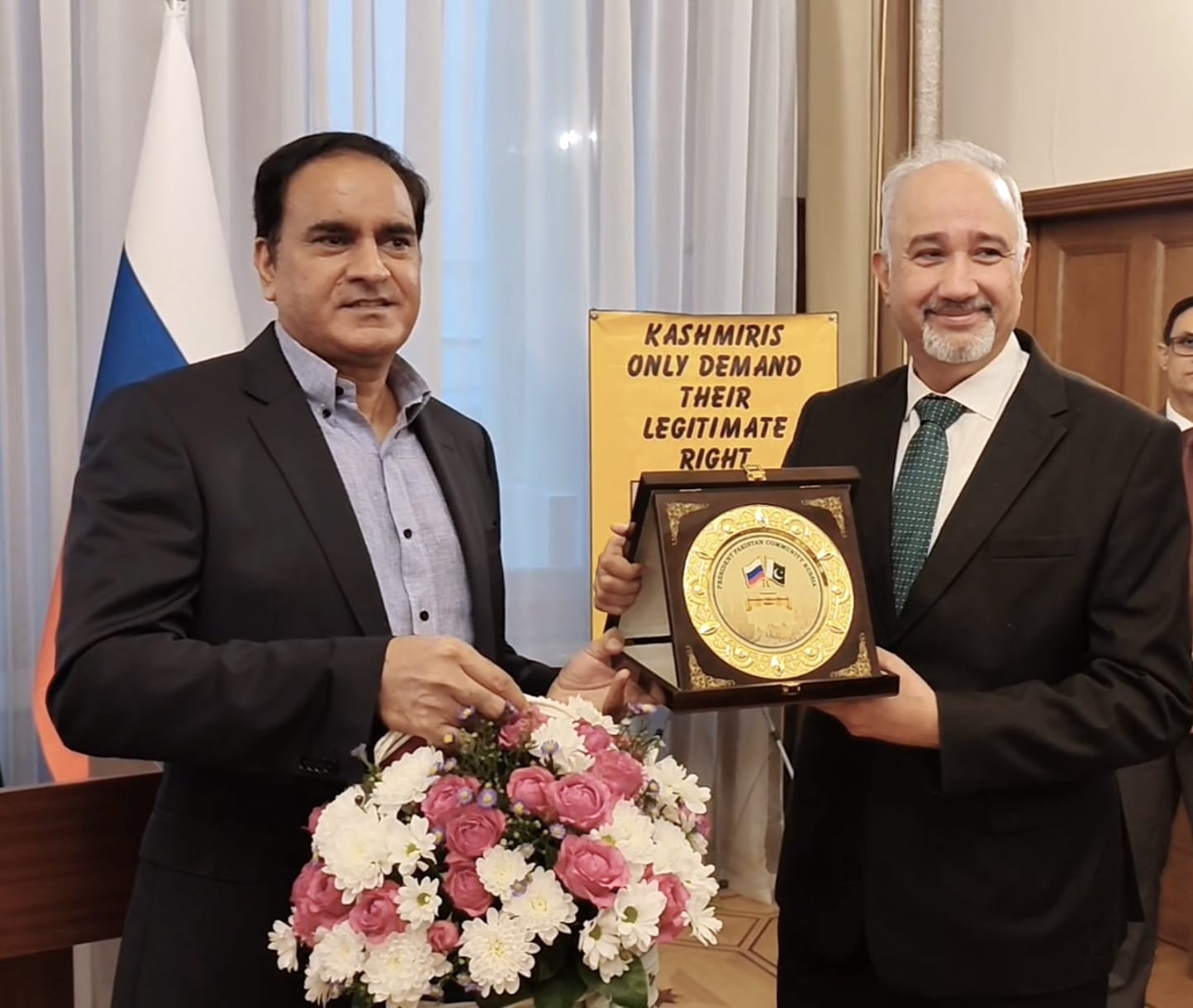 پاکستان کمیونٹی روس کے صدر ملک شہباز کی جانب سے یادگاری شیلڈ اور گلدستہ پیش — دوطرفہ تعلقات کے فروغ کے عزم کا اظہار