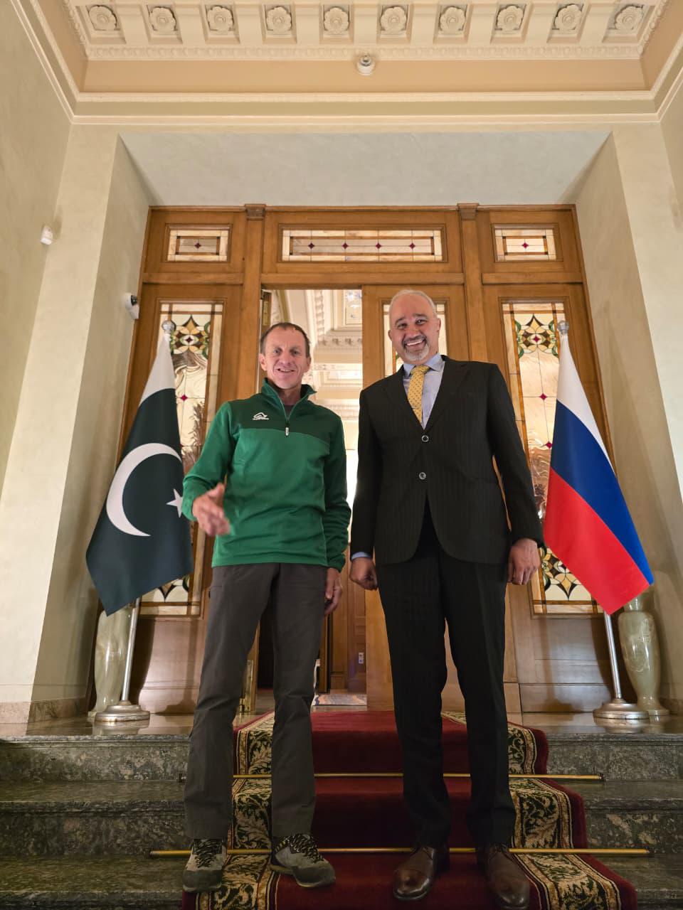 ماسکو (وائس آف رشیا) ماسکو میں پاکستان کے سفیر فیصل نیاز ترمذی نے عالمی شہرت یافتہ روسی کوہ پیما ڈینس اُروبکو کا پاکستان ہاؤس میں استقبال کیا۔ ملاقات کے دوران ڈینس اُروبکو نے سفیر کو اپنی حالیہ کوہ پیمائی کی کامیابی سے آگاہ کیا۔