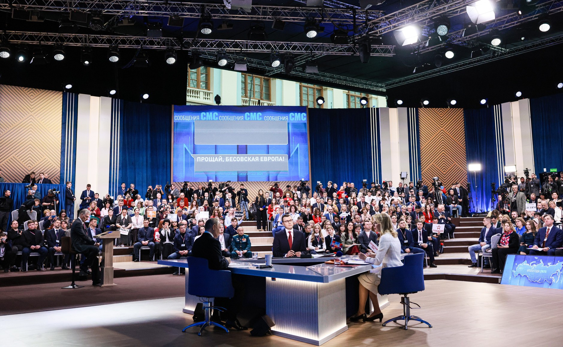 ماسکو کے تاریخی گوسٹینی دوور میں منعقد ہونے والے اس براہِ راست پروگرام میں صدر پوتن نے ملکی و غیر ملکی صحافیوں اور عوامی سوالات کے جواب دیتے ہوئے کہا کہ روس امن کے ذریعے اس تنازع کا خاتمہ چاہتا ہے، تاہم اس کے لیے ضروری ہے کہ بحران کی بنیادی وجوہات کو ختم کیا جائے۔ انہوں نے کہا کہ روس کی جانب سے متعدد مواقع پر مذاکرات کی پیشکش کی گئی، مگر یوکرینی قیادت نے سنجیدہ رویہ اختیار نہیں کیا۔