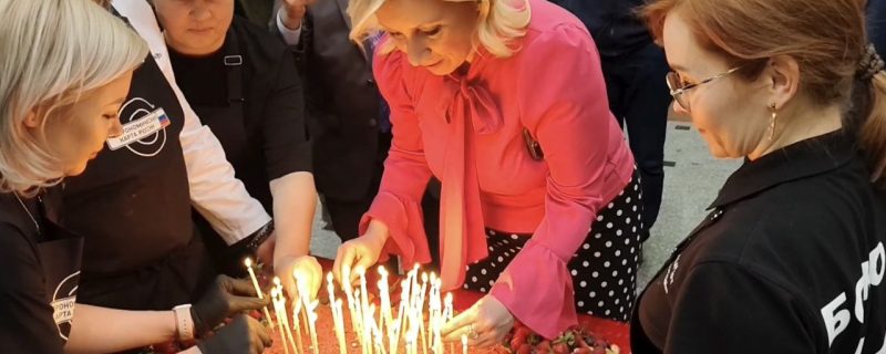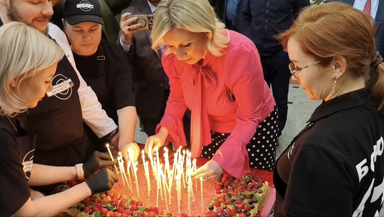 تقریب کا ایک نمایاں اور دلکش لمحہ اس وقت آیا جب ماریہ زخارووا نے تمام مہمانوں کے ہمراہ اپنی پچاسویں سالگرہ کا کیک کاٹا۔ اس موقع پر شرکاء نے تالیاں بجا کر انہیں سالگرہ کی مبارکباد دی اور نیک تمناؤں کا اظہار کیا۔ کیک کٹنگ کی یہ تقریب مہمانوں کے لیے خصوصی توجہ کا مرکز بنی۔