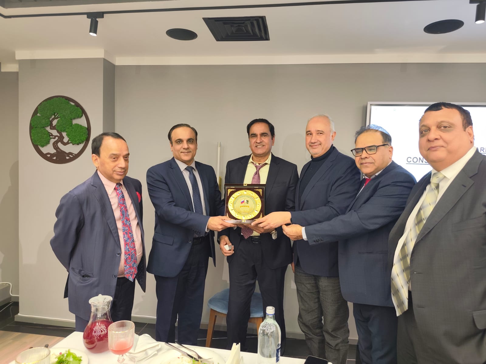 The Pakistan Community Russia also presented a special shield to Consellor Khalid Zia in recognition of his outstanding service, which was jointly handed over by Malik Shahbaz, President of Pakistan Community Russia, and Ambassador Faisal Niaz Tirmizi. Both speakers emphasized that the community would always value his contributions.